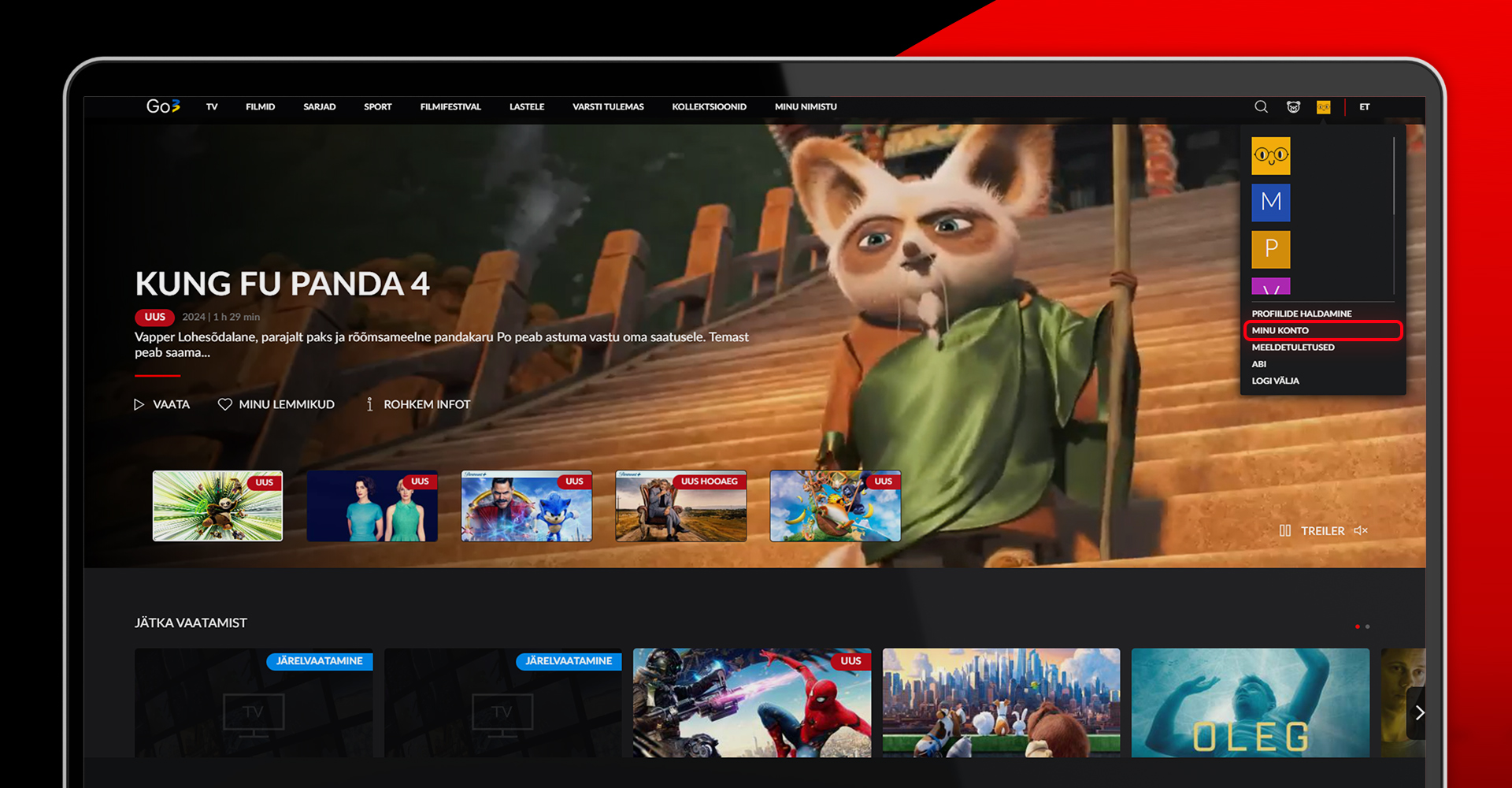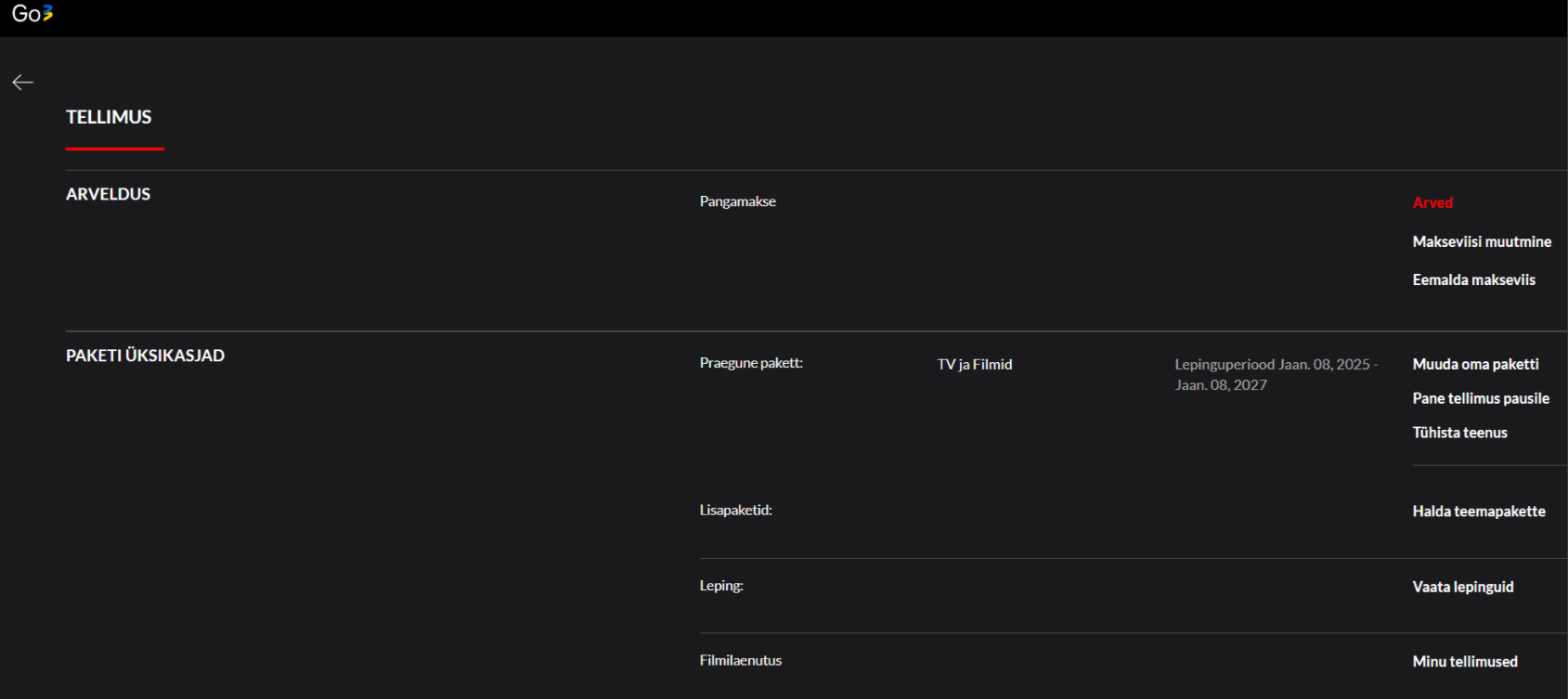 Go3 konto ja seaded on leitavad aadressil www.go3.tv:
